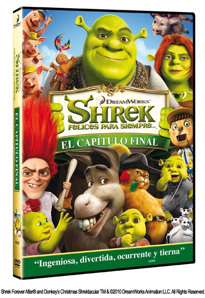 Tras desafiar a un malvado dragón, rescatar a una bella princesa y salvar el reino de sus suegros, ¿qué más puede hacer un ogro? Bueno, si se llama Shrek, puede acabar siendo un hogareño padre de familia de la noche a la mañana... La última aventura del ogro más divertido, Shrek: Felices para siempre, llega a tu casa en formato DVD, ¿listo para llevarte una?